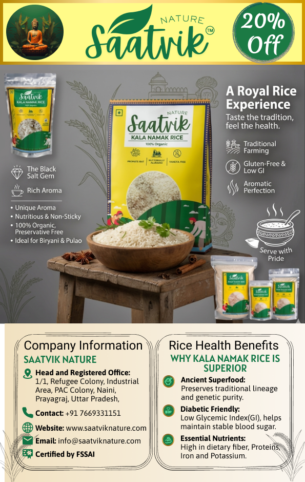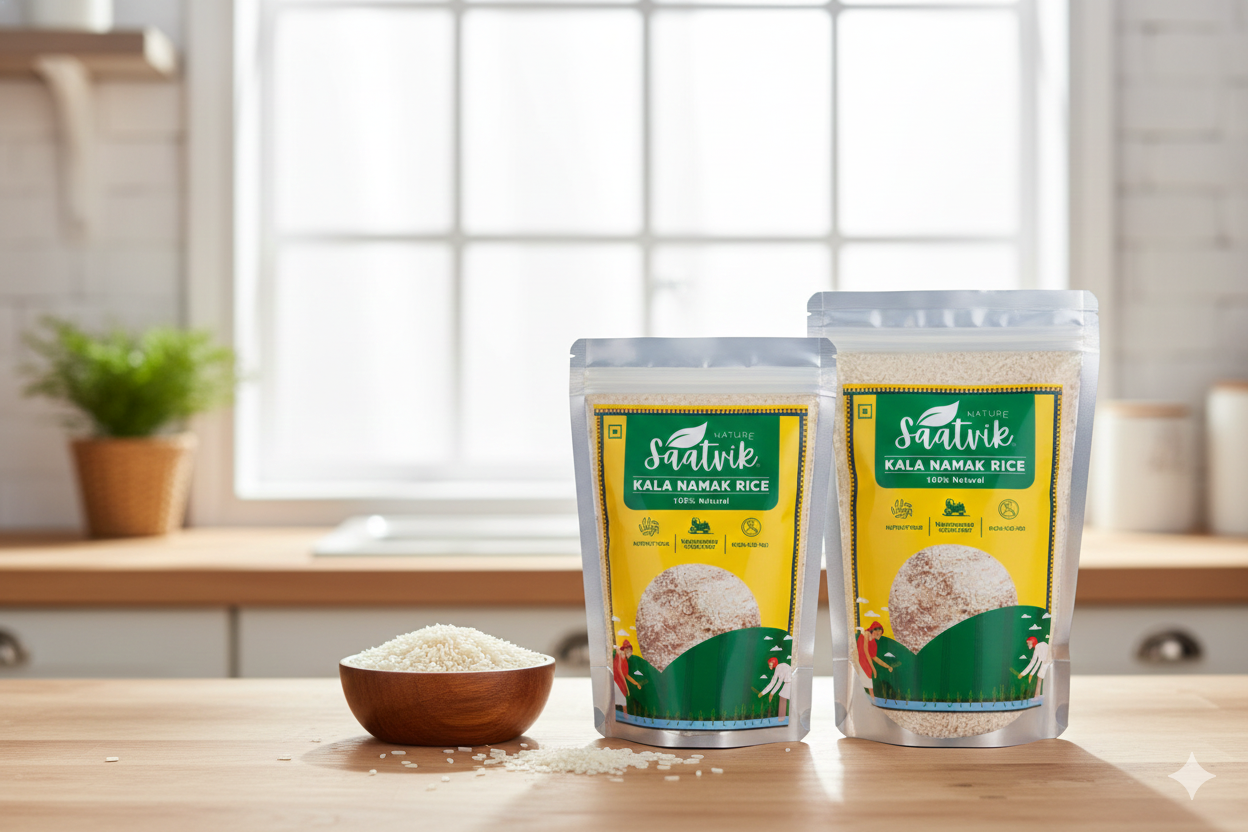 Saatvik Nature Kala Namak Rice is available in 1 kg, 2.5 kg, and 5 kg packs.
