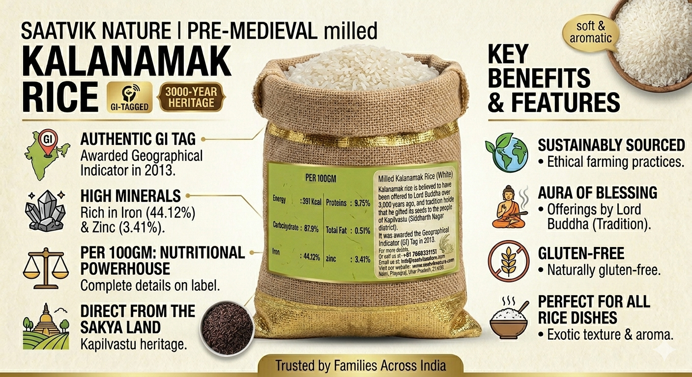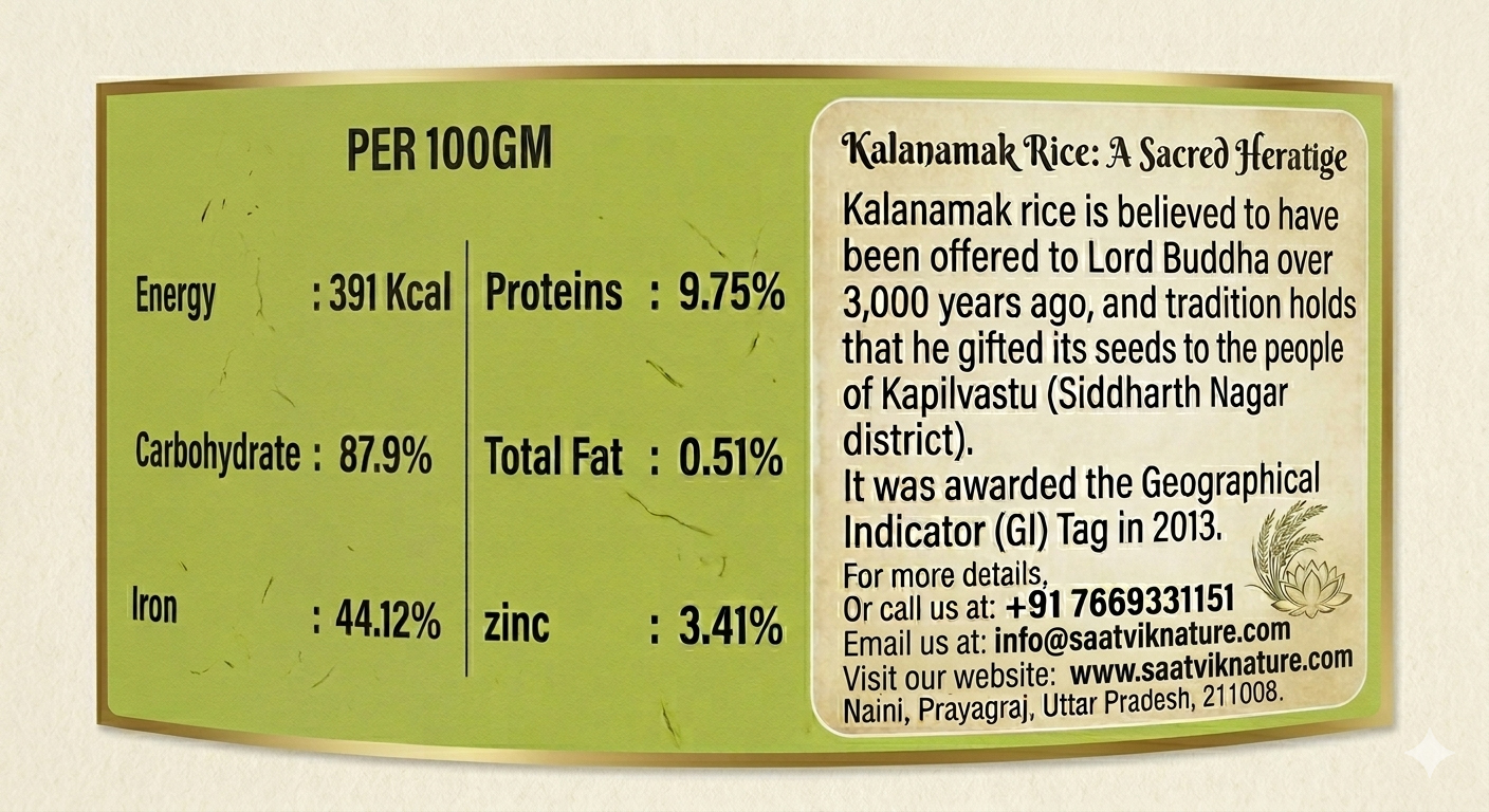 Often called “Buddha Rice”, this ancient grain is linked to Lord Buddha and the Kapilvastu kingdom, where it was grown centuries ago.